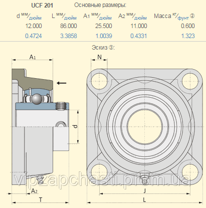 UCF202 корпус с подшипником (SNR, Koyo, SKF, INA, RBF, NTN, CX)