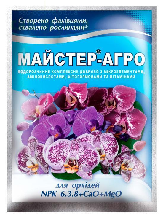 Удобрение Мастер-Агро для орхидей NPK: 6.3.8 + CaO + MgO - высокоэффективное бесхлорное водорастворимое комплексное удобрение для питания большинства видов орхидей (Фаленопсис, Однотония, Вейлстекеара, Каттлея, Цимбидиум, Камбрия и др.) с микроэлементами в форме хелатов. Выпускается в оптимально подобранном соотношении NPK с добавлением кальция и магния, cпециально сбалансированных для питания орхидей на различных стадиях развития растения. Не содержит хлор и натрий. Содержит полный набор микроэлементов в форме ЕDTA. Быстро усваивается растениями, полностью растворим, прост в применении. Кальций и магний, которые содержатся в удобрении, обеспечивают деление клеток, что увеличивает массу наземной части растений, способствует интенсивному окрашиванию листьев и цветков. Сбалансированное соотношение микро- и макроэлементов, аминокислот, фитогормонов и витаминов удовлетворяет все нужды растений в питательных веществах на разных стадиях развития, стимулирует цветение.