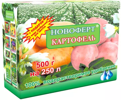 Нехватка элементов питания особенно сказывается на формировании клубней, их лежкости, количестве крахмала и вкусовых качествах, кроме того удобрение НОВОФЕРТ «КАРТОФЕЛЬ» способствует сопротивляемости растений к гнилям, грибковым и бактериальным заболеваниям.