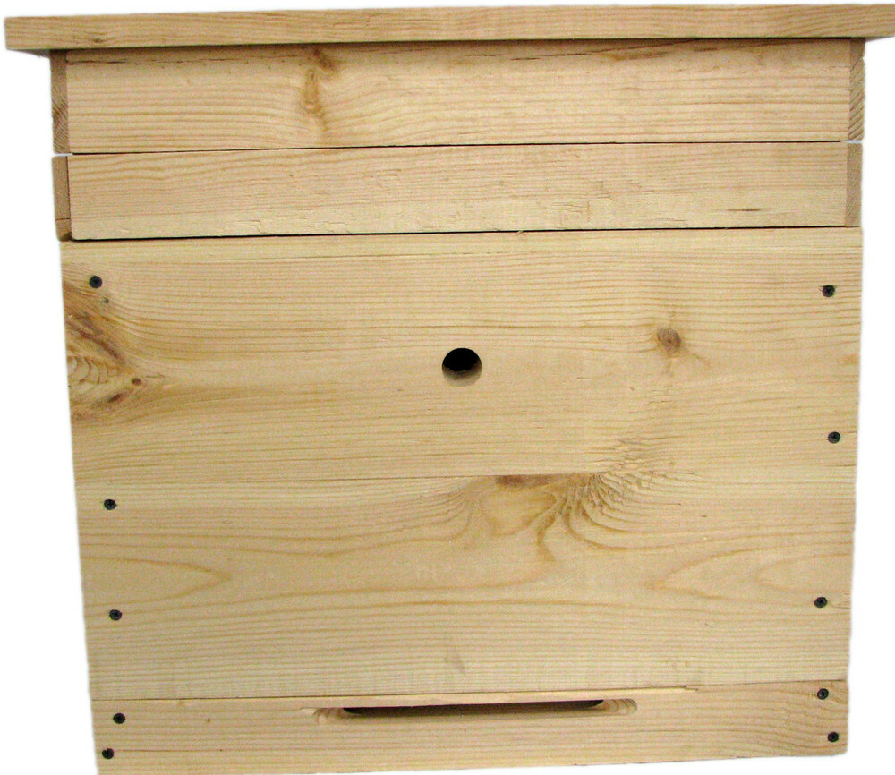 Улей Дадана-Блатта комплектуется: дном, корпусом, подкрышником, крышей, комплектом потолочин, одной большой и малой прилетной досточкой. Все детали улья фальцевы и взаимозаменяемы. Толщина стен корпусов и днища 35 мм, крыши и подкрышника – 20 мм. Улей изготовлен из хвойной древесины высокого качества, гнилые и больные сучки обрезаются или высверливаются. Внутренние размеры корпуса 450х450х320. В один такой корпус содержится 12 стандартных рамок размером 435Х300 мм. Улей может комплектоваться дном с противовароатозной сеткой, а также дополнительными корпусами и магазинами