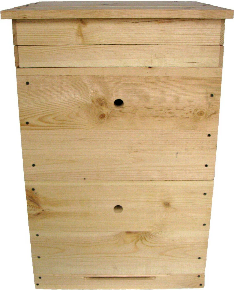 Комплектуется крышей, подкрышником двумя корпусами на 12 рамок, днищем прилетными дощечками и потолочинами.