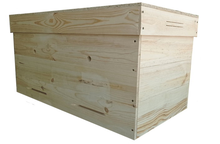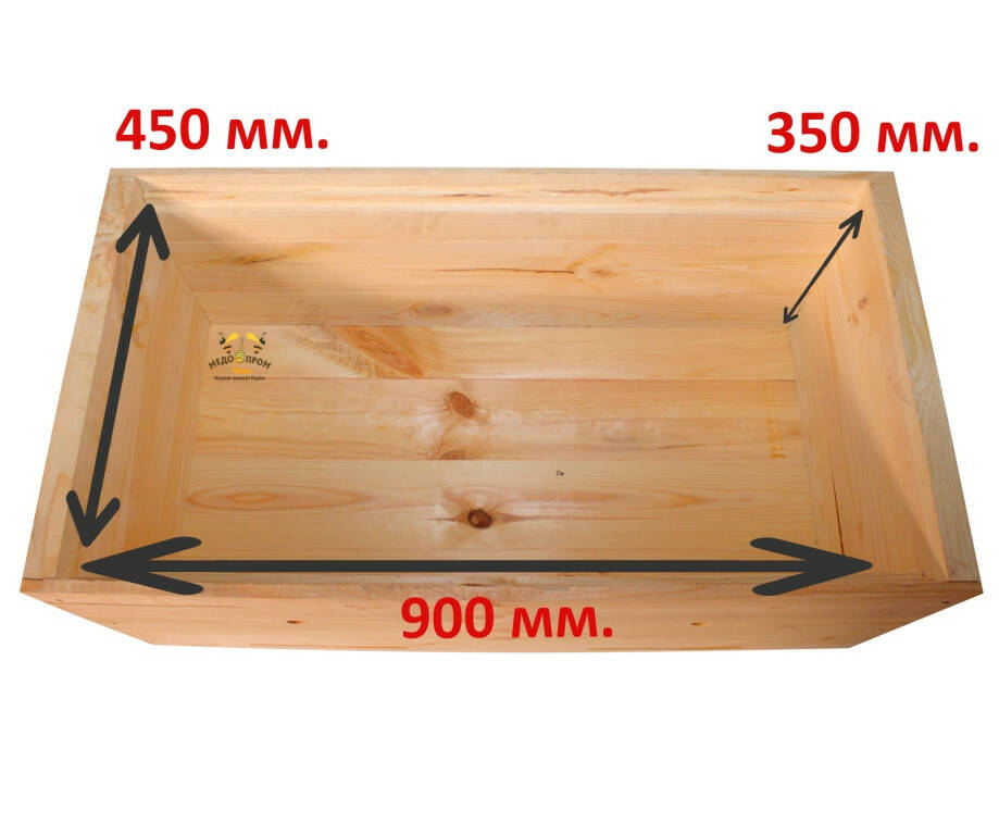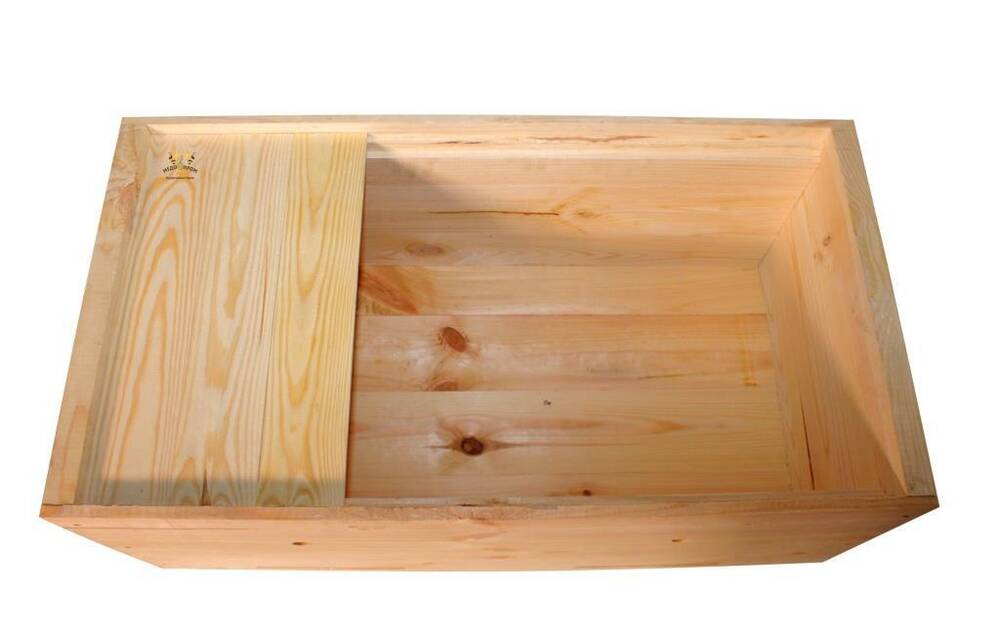 Улей лежак изготовлен из сосновой доски толщиной 35 мм. Улей вмещает 24 рамки размером 435Х300 мм. Комплектуется крышей, прилетными и потолочными дощечками. Размер корпуса 970Х520 мм.