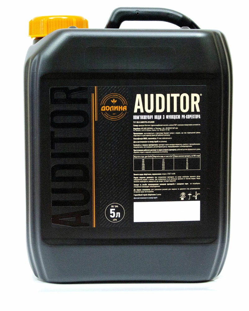 AUDITOR® - умягчитель воды (dH-корректор) с функцией pH-корректора, который применяется в подготовке баковой смеси с водой, которая имеет повышенный уровень жесткости, и для коррекции уровня pH рабочего раствора.