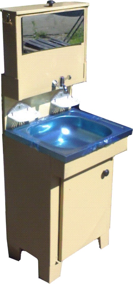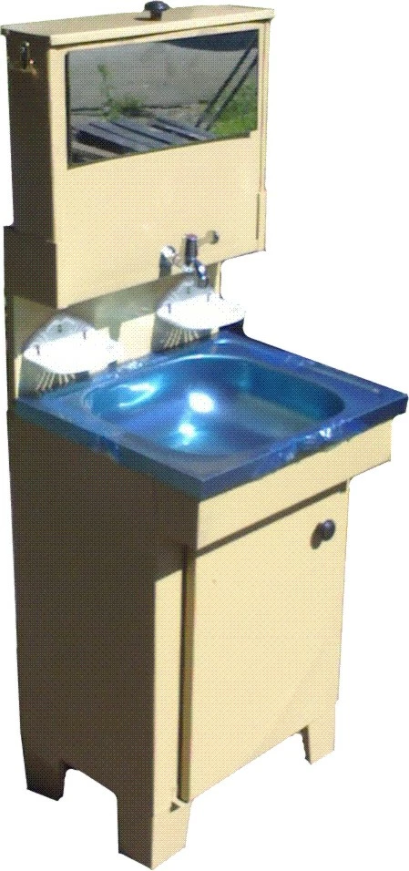 Вмивальник призначений для особистої гігієни та господарчих потребах користувачів в умовах відсутності водопостачання або постачання гарячої води; найкращий вибір при потребі теплої води;температура нагріву води встановлюється власником від 40 до 80 град.С, нагріваючий пристрій 1,5 квт має автоматичне реле відключення при досягненні заданої температури; система механічного реле запобігає ввімкненню нагрівача без мінімального рівня води (3-3,5 л); вмивальник оснащений 16А автоматом для запобігання короткому замиканю мережі та додатковою розеткою для електроприладів (бритва,фен тощо) габаритні розміри(орієнтовно) 550х400х1400 мм(втранспортному положенні трохи більше); бак оцинкований об'ємом 15-16 л; мийка  з якісної нержавіючої сталі;