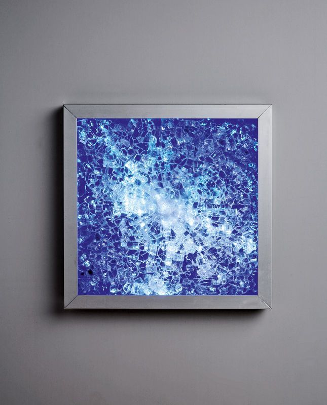 1. Декоративное панно: Панно со стеклянной крошкой размером 200х200х25 мм. Оно может освещаться как одним цветным светодиодом, так и белым, что создает впечатление льда. Это особенно эффектно смотрится в комнатах отдыха или непосредственно в парной.