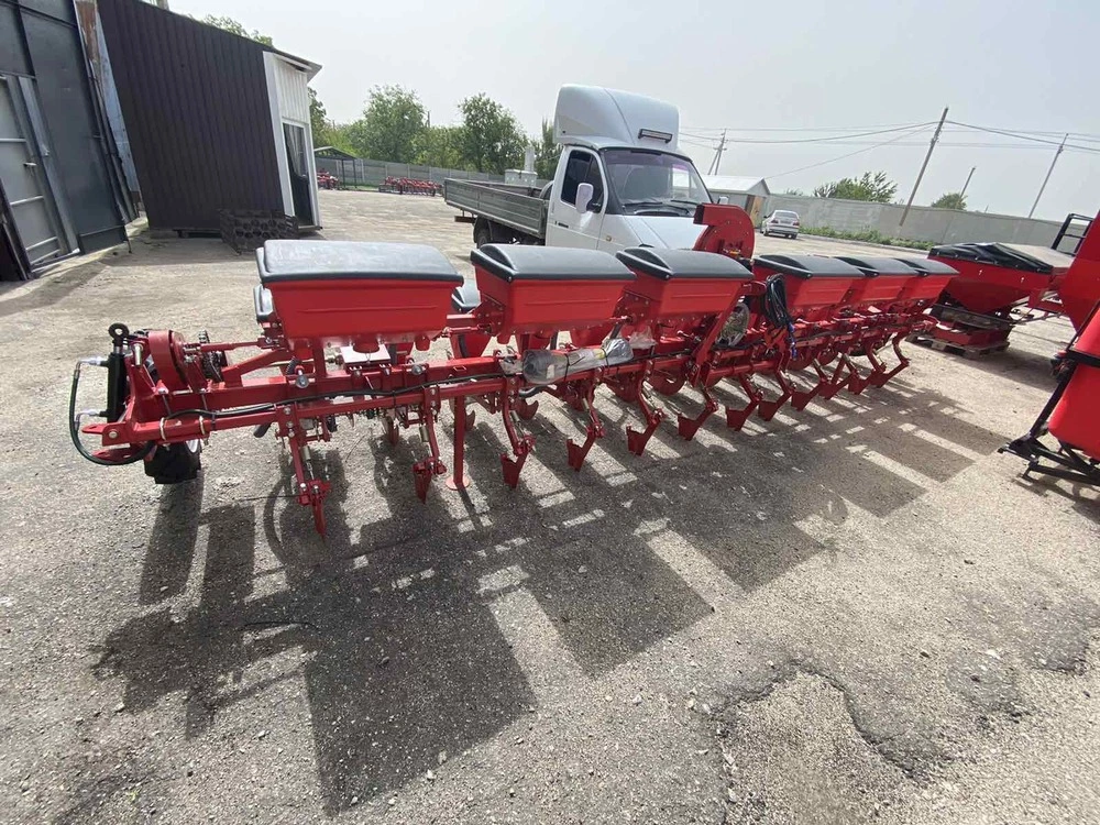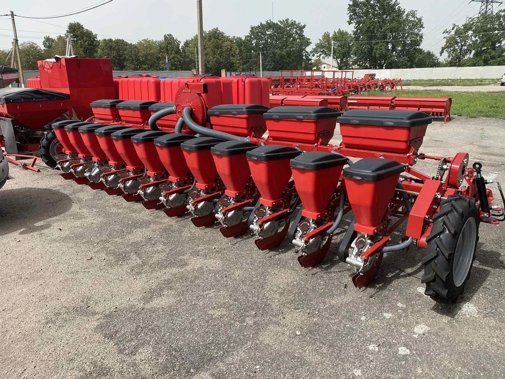 Универсальная пневматическая сеялка, предназначенная для точного высева калиброванных семян: кукурузы подсолнечника,сои, а также семян кормовых бобов, фасоли, люпина с одновременным, раздельным от семян внесением минеральных удобрений