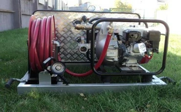 Отдельно стоит отметить, что и пожарный модуль снабжен мотопомпой, вода в которую подается как из встроенного резервуара, так и из внешних источников. Высота напора воды составляет 80 м.