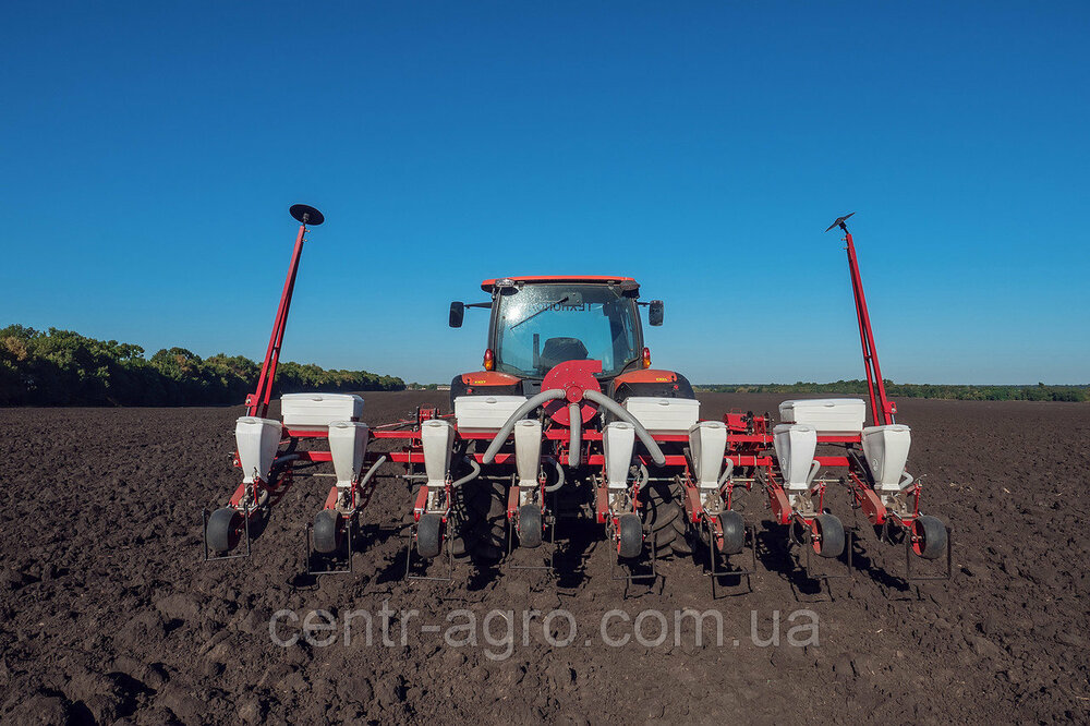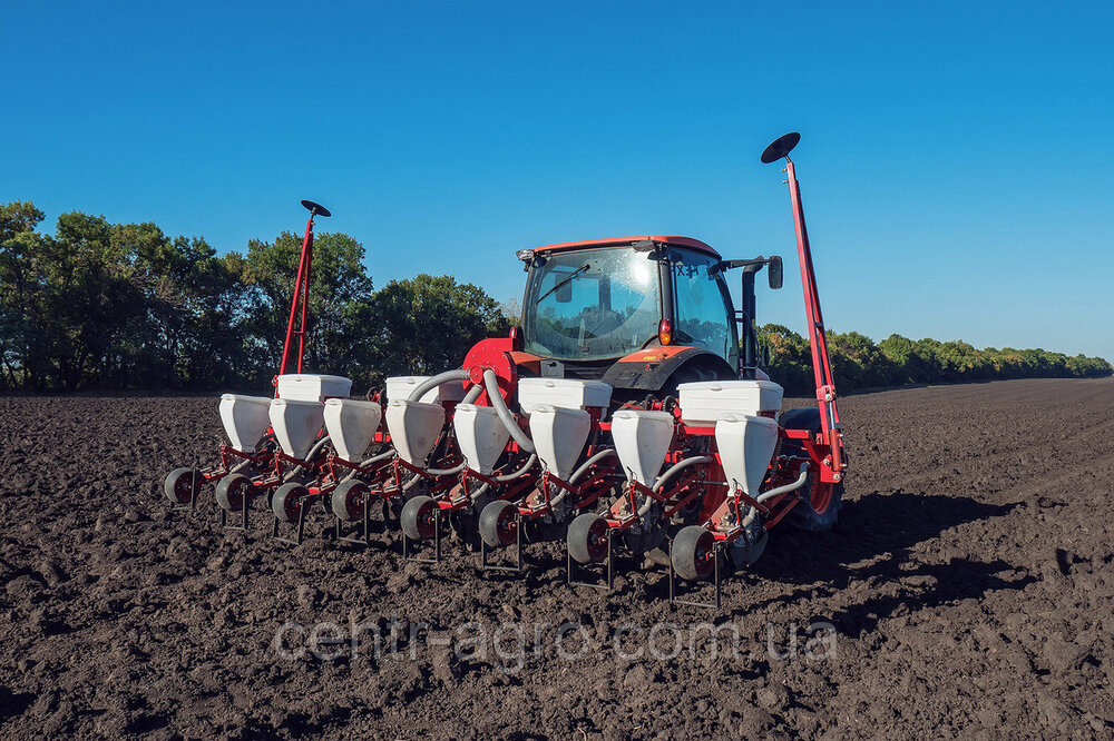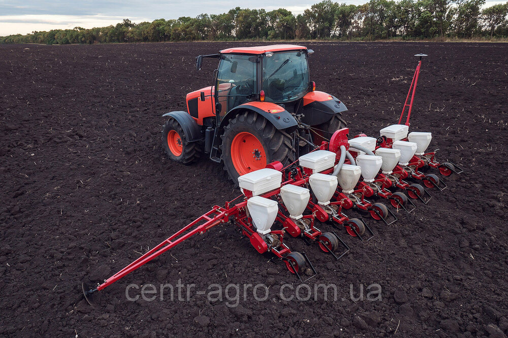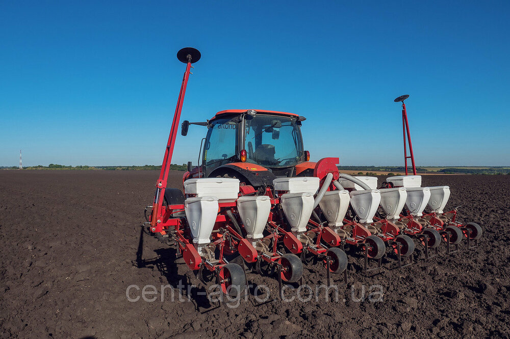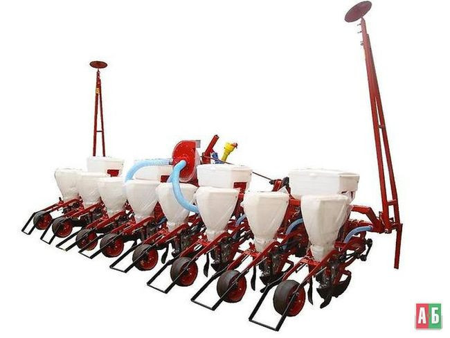 Сеялку СУПН-8(пластиковые ящики под семена и удобрения ) Сеялка точного высева СУПН-8 (пластиковые ящики под семена и удобрения ) предназначена для пунктирного посева калиброванных и некалиброванных отсортированных семян кукурузы, подсолнечника, клещевины и сорго, а также семян кормовых бобов, сои, фасоли и люпина с одновременным, раздельным от семян, внесением минеральных удобрений и прикатыванием почвы в рядках. Привод от ВОМ и инжектора Сеялки агрегатируются с тракторами клсса-1.4(МТЗ-80.(82) ЮМЗ-6) Производительность, га/час 3,36-3,9 Ширина захвата, м 3,6 Ширина междурядий, см 70 Глубина заделки, мм 40-120 Норма высева семян, кг/га 2-16 Рабочая скорость км/ч 5-7 Масса, кг 1240