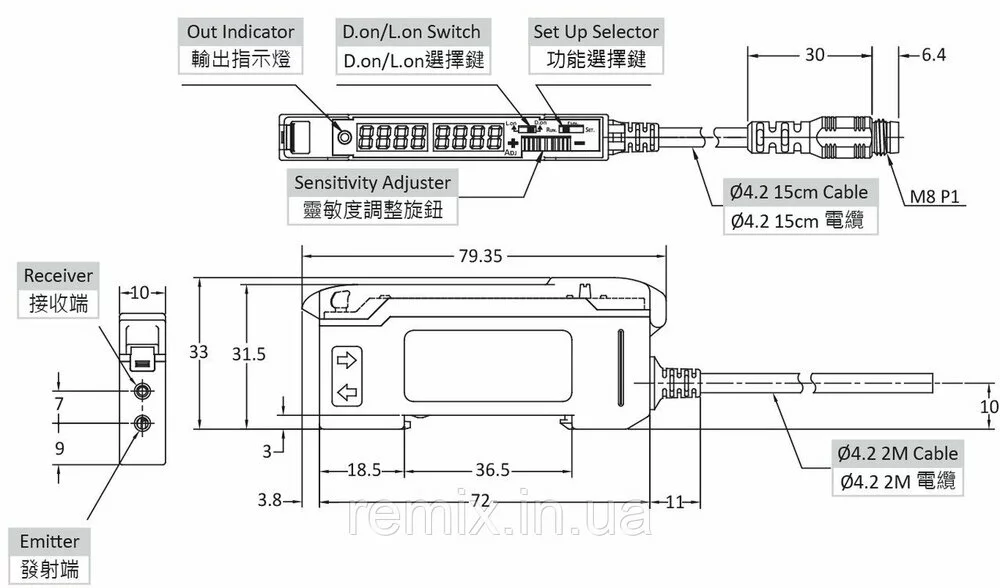-выход PNP L.on/D.on., кабель 2м