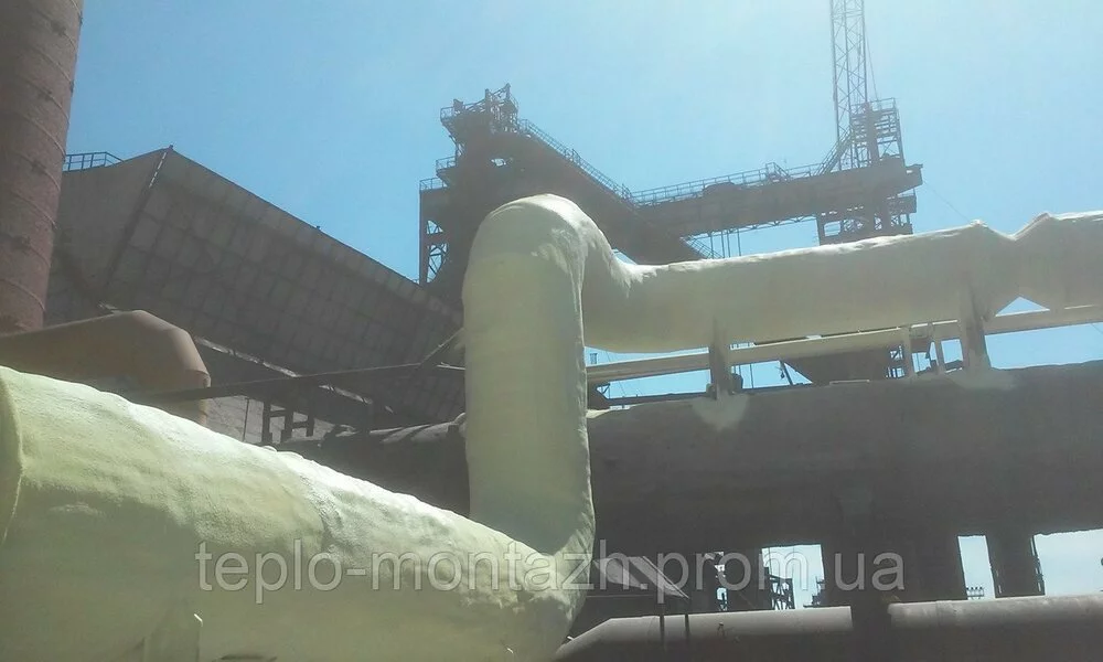 Утепление, термоизоляция, газоизоляция, гидроизоляция, защита от коррозии — методом напыления пенополиуретана на трубопровод.