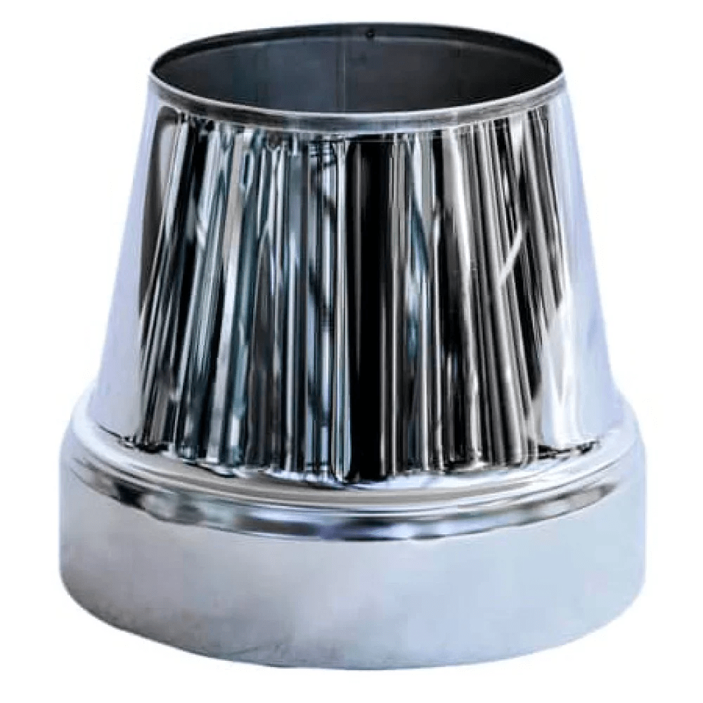Обратный сэндвич-конус Ø150/220 мм из нержавеющей стали — это функциональный элемент дымоходной системы, который устанавливается в нижней части конструкции для перехода от одностенной трубы к утепленной. Благодаря особой форме и продуманной конструкции он обеспечивает надежное и герметичное соединение, что является критически важным для эффективной и безопасной работы дымохода.