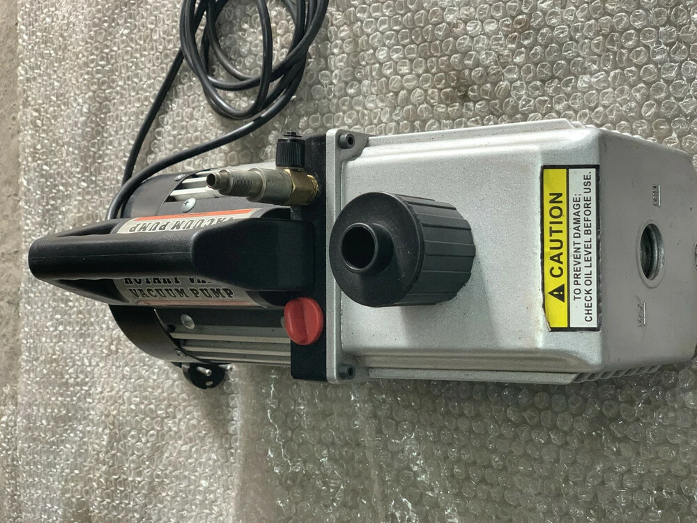 Насос вакуумный двухступенчатый 340 л/мин , предназначен для вакуумирования фреоновых магистралей в системах охлаждения и кондиционирования, изготовлен из алюминиевого корпуса (который хорошо рассеивает тепло) как единое устройство без редуктора (для большей компактности и снижения веса), с эластичной муфтой между движущимися частями (для низкого шума и вибрации).