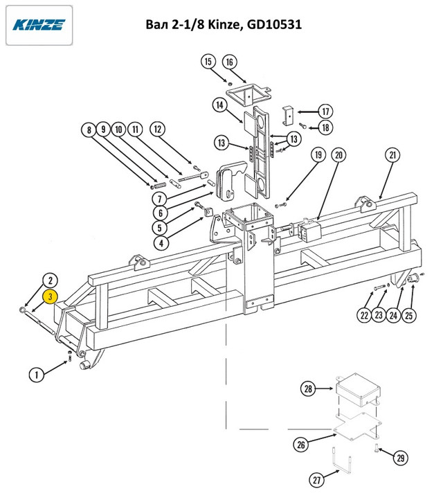 3.- GD10531 - 1 - Hinge Pin, 2 ⅛" x 25 ¾"