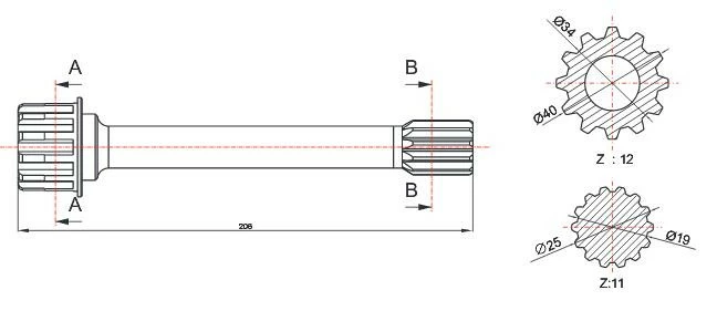 Вал отбора мощности (ВОМ) Iveco 2870.9 (206 мм)