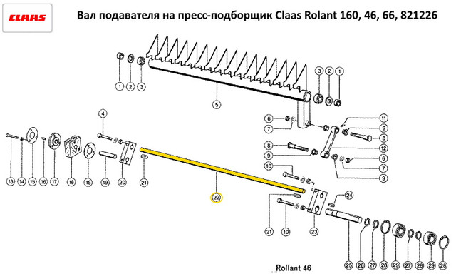 Вал подавателя на пресс-подборщик Claas Rolant 160, 46, 66, 821226