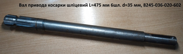 Вал привода косарки шлицевой L=475 мм 6шл. d=35 мм, 8245-036-020-602