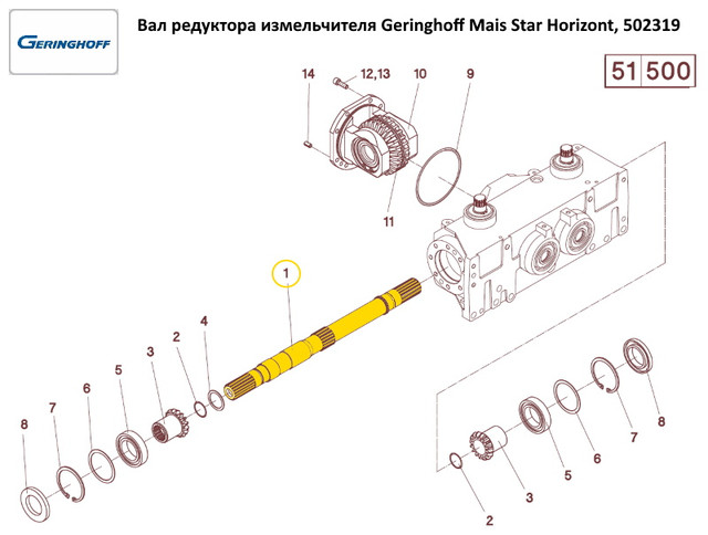 Вал редуктора измельчителя Geringhoff Mais Star Horizont, 502319