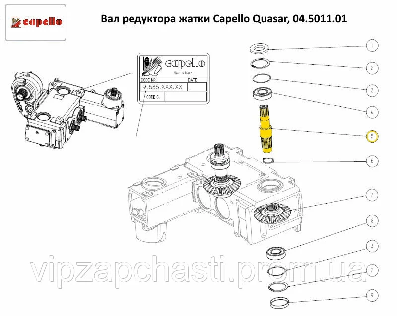 Вал редуктора кукурузной жатки Capello Quasar, 04.5011.01