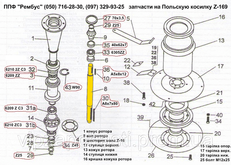Вал ротора косилки Z-169 Польша (вал средний 450мм), 8245-036-010-617