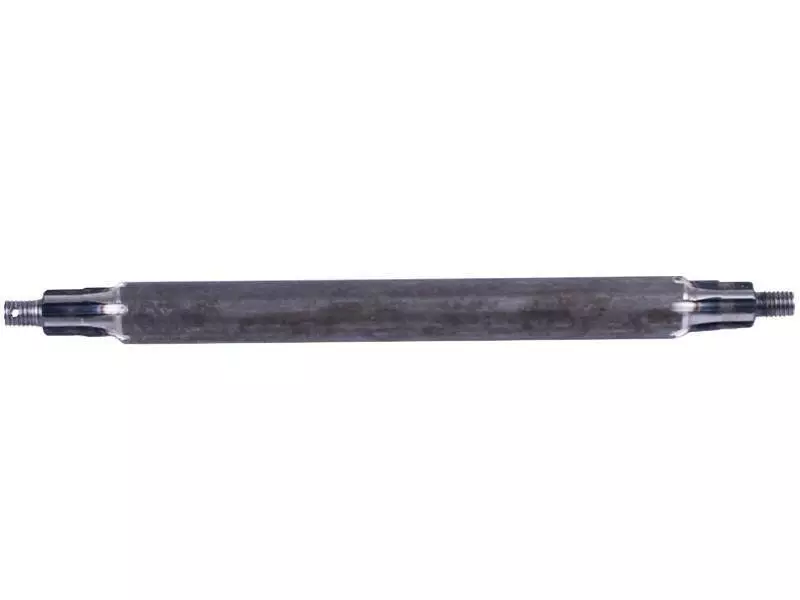 Особенностью данной детали являются концы вала, оснащенные шлицевыми соединениями, обеспечивающими надежное соединение и передачу значительного крутящего момента. Этот компонент трансмиссии способен выдерживать высокие торсионные нагрузки, обеспечивая стабильность и долгий срок эксплуатации механизма.