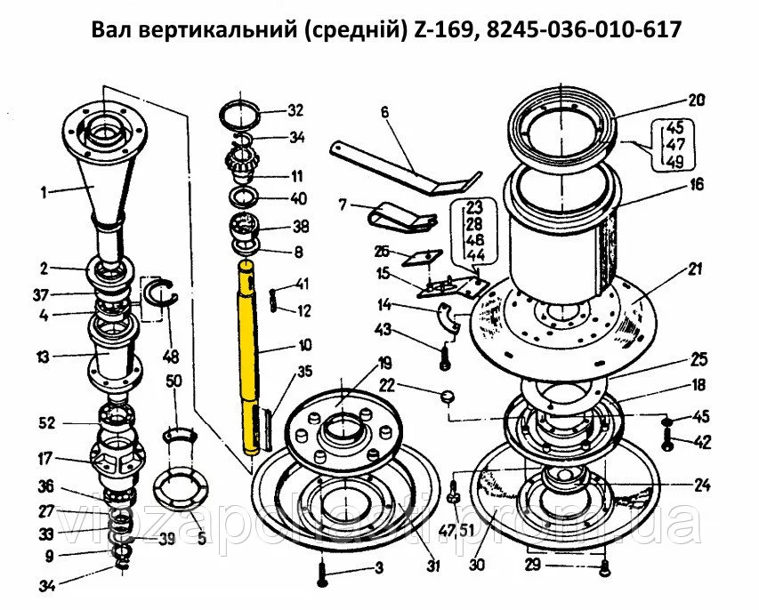Вал вертикальный (средний) Z-169, 8245-036-010-617