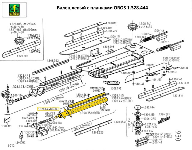 1.328.442 . . . . . . . валец левый в сборе (кукурузная жатка OROS)