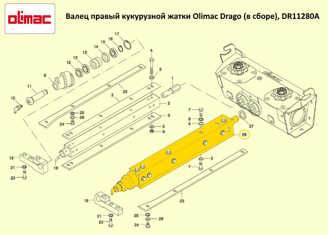 Валец правый кукурузной жатки Olimac Drago (в сборе), DR11280A