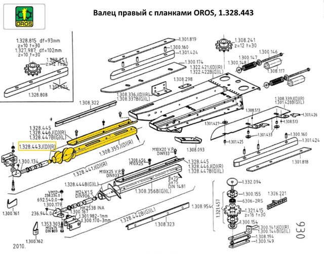 1.328.446 . . . . . . . планка вальца правая (запчасти OROS)