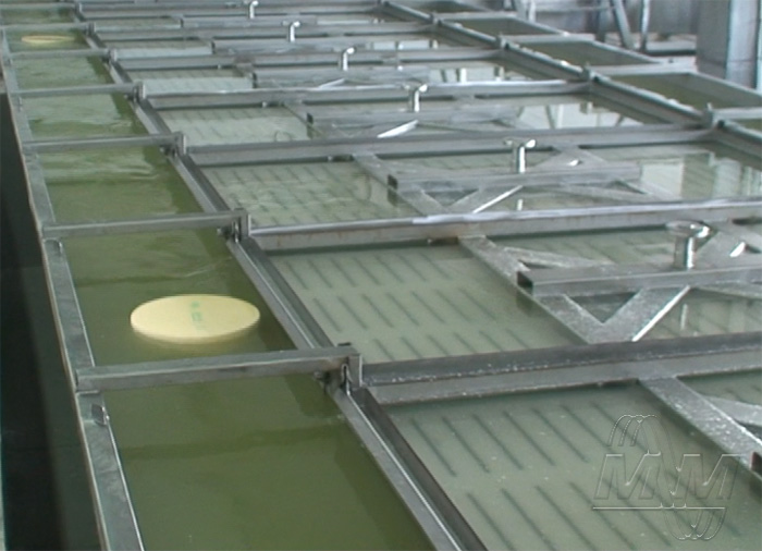 Ванни посолки сиру виконані у вигляді системи з двох ванн з'єднаних каналами, якими відбувається транспортування сирних головок (лінія виробництва сиру). У кожній ванні для посолки сиру розміщується 24 контейнери для посолки, кожен з яких має по 8 рівнів (полиць), на які здійснюється поетапне завантаження. Переміщення сирних головок ваннами відбувається під дією потоків рідини (розсолу), створюваних циркуляційними насосами. Вивантаження сирних головок з ванн проводиться за допомогою транспортера, що відводить конвеєр.