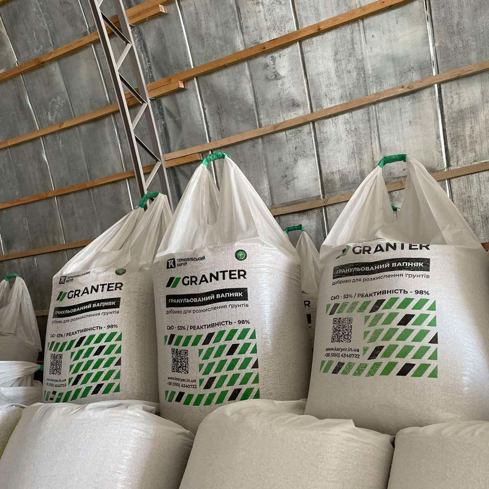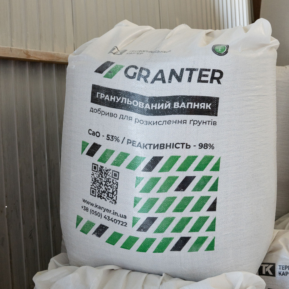 Гранульований вапняк GRANTER виробництва ПрАТ «Тернопільський кар’єр» – екологічно чисте добриво: виготовляється з вапнякового борошна власного виробництва та води.