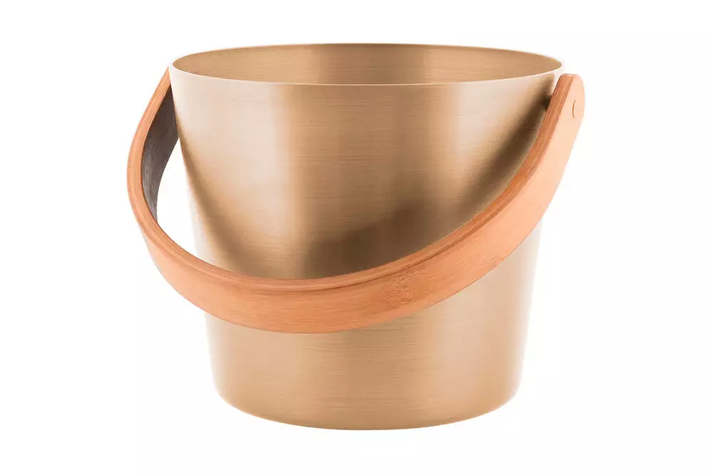 Алюминиевое ведро для сауны Rento цвета шампань объединяет в себе высокое качество, функциональность и элегантный дизайн для создания неповторимого опыта в сауне. Сделанное из высококачественного алюминия, это ведро не только оправдывает ожидания относительно долговечности, но и придает вашему пространству стильный вид.