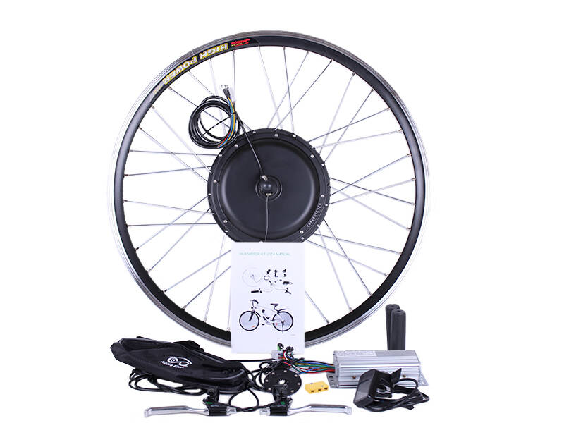 Элементы набора готовы к монтажу. Устанавливаются легко и без проблем с посадочными местами и трещотками. Собранное и заспицованное колесо с электродвигателем 48v 1000w, ставится на переднюю или заднюю ось велосипеда (в зависимости от комплекта). Крепкий обод с усиленными спицами защищает мотор от деформации, вынослив и стойкий к нагрузкам.
