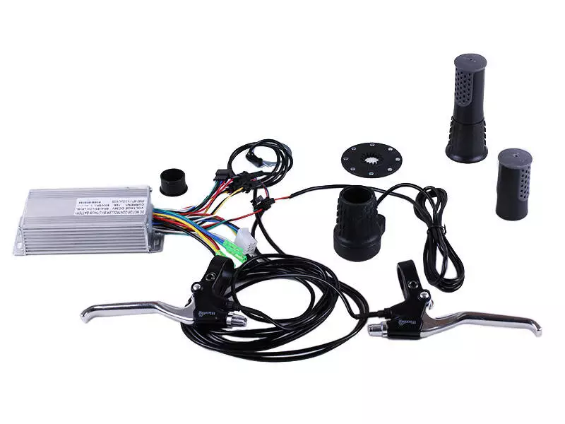 Также набор оснащен ручками газа/тормоза, которые управляют функцией приведения в движение или тормоза мотора колеса, показывает индикацию емкости аккумулятора. Компактное зарядное устройство для быстрого и безопасного заряда, сохраняющего срок службы аккумуляторов. А грипсы, в свою очередь, обеспечат надежный захвата руля, смягчения вибрации, уменьшение нагрузки на суставы.