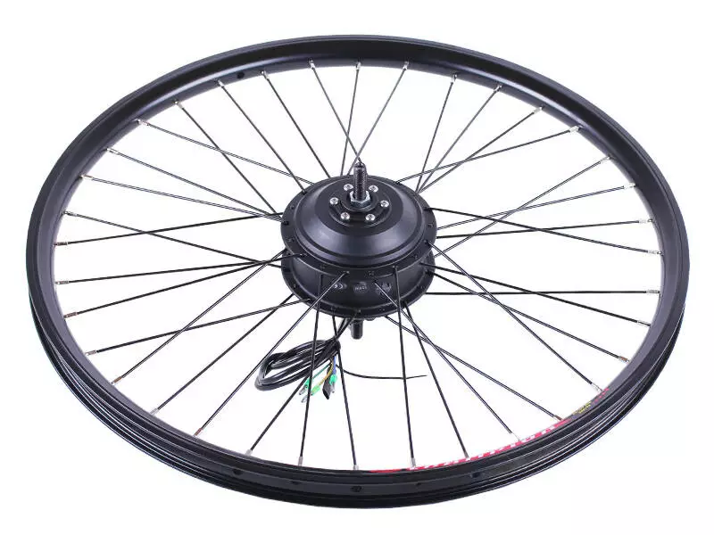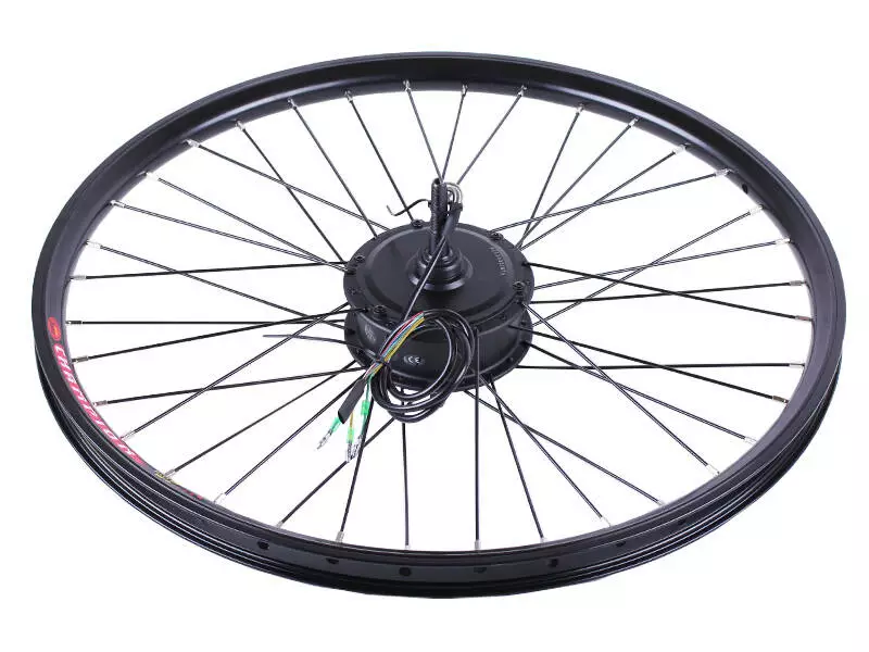 Элементы набора готовы к монтажу. Устанавливаются легко и без проблем с посадочными местами и трещотками. Собранное и заспицованное колесо с электродвигателем 36v 350w, ставится на переднюю или заднюю ось велосипеда (в зависимости от комплекта). Крепкий обод с усиленными спицами защищает мотор от деформации, вынослив и стойкий к нагрузкам.