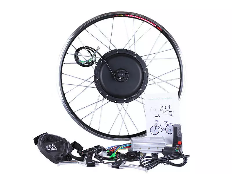 Элементы набора готовы к монтажу. Устанавливаются легко и без проблем с посадочными местами и трещотками. Собранное и заспицованное колесо с электродвигателем 36v 500w, ставится на переднюю или заднюю ось велосипеда (в зависимости от комплекта). Крепкий обод с усиленными спицами защищает мотор от деформации, вынослив и стойкий к нагрузкам.