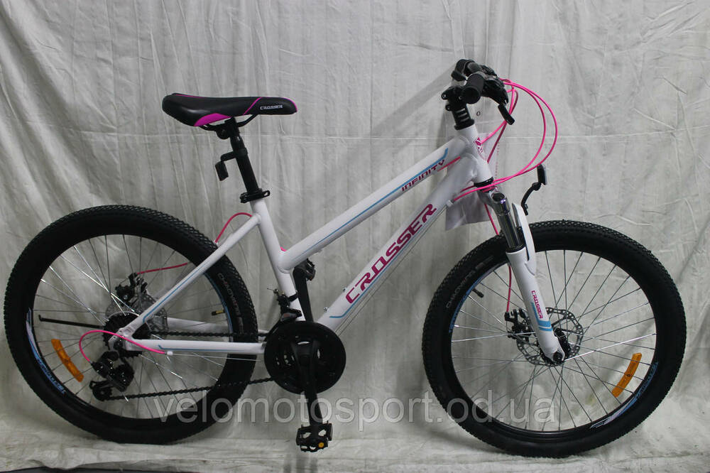 Для заказов и консультаций обращайтесь по номеру телефона:0931009592 ; 0685517104; 0957580652- Велосипед Crosser INFINITY 26 - НОВИНКА.Этот велосипед специально создан для девушек он обладает уникальной заниженной рамой благодаря чему девушка с лёгкостью может как залезть так и слезть с велосипеда. Велосипед оборудован простой но надежной передней вилкой с которой велосипедистка будет чувствовать себя комфортно как на шоссе так и на бездорожье. Трансмиссия хорошего любительского уровня на 21 скорость. Тормоза дисковые механические.Характеристики :Диаметр колес 26"; Доступные цвета Серый; Белый; красный; Размер рамы 18"; Рама Алюминий AL6061; Вилка Zoom disk AMT 26" (60мм, пружинная); Задний переключатель Shimano TOURNEY RD-TY 300; Количество скоростей 21; Передний переключатель Shimano TOURNEY FD-TZ30 ;Тормоза Дисковая механика (Ротора 160/160 мм); Манетки Shimano Sl-RS 35 Revoshift; Кассета Трещотка 7-ми Shimano MF-TZ 21-7 (14-28); Цепь KMC Z50; Шатуны Crosser (стальные неразборные, 42-32-22); Каретка Necо cartridge bottom bracket (закрытая бочка на промподшипниках); Втулки Quando (на шарикоподшипниках, на эксцентриках); Обода Stars Rim (двойной усиленный); Покрышки Chaoyang Рулевая Neco 1 1/8" (шарикоподшипники, безрезьбовая)