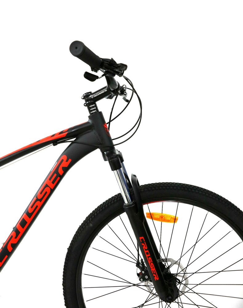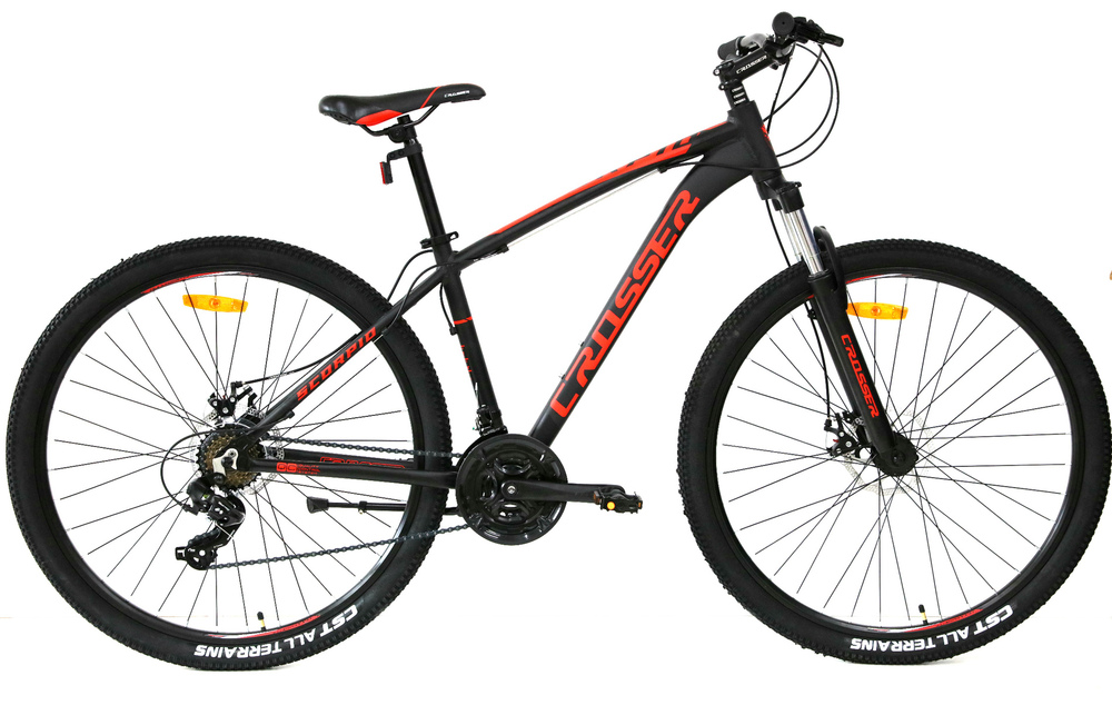 Велосипед Crosser SCORPIO 29 - НОВИНКА .Crosser Scorpio 29 - это универсальный велосипед с колесами 29 дюймов имеет хорошее сцепление и уверенность за счет широкого обода и области контакта с поверхностью любого покрытия земли. Модель оборудована дисковыми тормозами, которые не забиваются грязью и не увеличивают тормозной путь в непогоду.  А удобство для передвижения по пересеченной местности обеспечат регулируемое седло и антискользящие ручки руля. Передняя амортизированная вилка помогает разгрузить руки.Основные характеристики:Производитель  Crosser;Пол Унисекс;Тип велосипеда Найнер;Возрастная группа  С 12 лет;Диаметр колеса/диска  29";Размер рамы  17;Задний тормоз Дисковый механический ; Материал изготовления рамы Алюминиевый сплав ; Количество колес велосипеда 2;Тип амортизации Передний;Передний тормоз Дисковый механический ; Количество скоростей 21.0;Форм фактор рамы Цельная;Конструкция вилки Пружинно-эластомерная;  Вес  17.0(кг);Надувные колеса Да;Максимальный вес  135.0(кг);Год выпуска 2019;Гарантийный срок  6(мес);Состояние Новое;Дополнительные характеристики:Крылья  Нет;Багажник Нет;Регулируемый вынос руля  Нет.