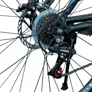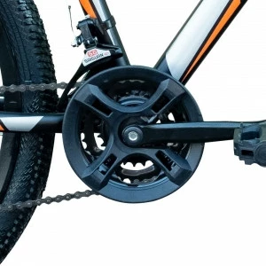 Жесткая вилка – удобная, простая в обслуживании, достаточная для катания по городу. Переключатели скоростей легендарного производителя SAIGUAN – простые, понятные, удобные. Всего 18 (6х3) скоростей. Пневматические шины 27,5х2,10 с мелким рисунком идеально подойдут для передвижения и по городским асфальтированным дорогам, и по мелкому гравию в сельской и парковой местности.