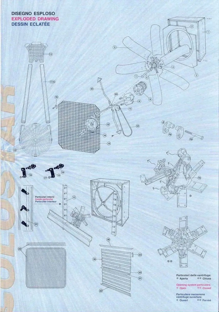 Вентилятори оснащені 6 лопатями з нержавіючої сталі і механізмом відкриття заслінок.