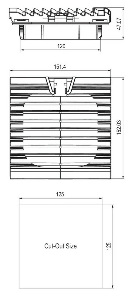Вырез в корпусе: 125 x 125 мм + 1 мм