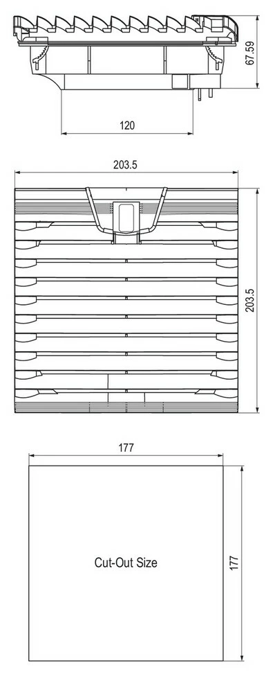 | Вентилятор с фильтром щитовой тип NTL-FFL-152, 220VAC | 138/162 м³/ч с фильтром и без фильтра соответственно | 230 В | Два многожильных провода (300 мм) или клемма | IP 54 |
