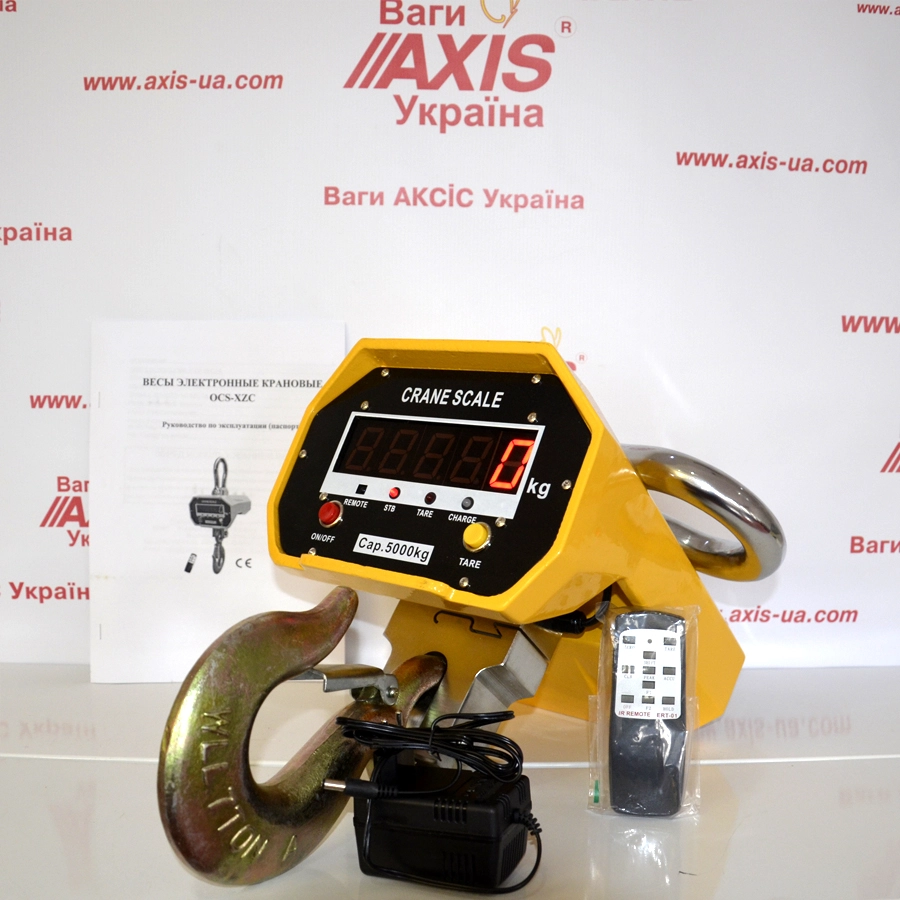 Ваги кранові OCS-5t-XZC до 5 тонн часто застосовуються для розвантаження та завантаження об'єктів на складі вагою до 5 т. За допомогою інфрачервоного пульта дистанційного керування, що входить в базовий комплект, вагами можна управляти з відстані до 30 м, а зарядка акумулятора дозволяє працювати від 80 - 100 год без підзарядки. Перевага використання даних ваг полягає в стабільних свідченнях і наявністю яскравого світлодіодного дисплея.