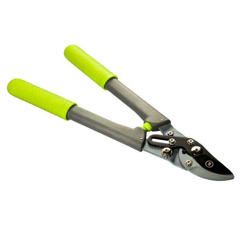 Короткий универсальный сучкорез с шестеренчатым механизмом. Очень удобная конструкция позволяет удобно работать в густой кроне, а благодаря шестеренчатому механизму легко резать сухие и живые ветки более 30 мм