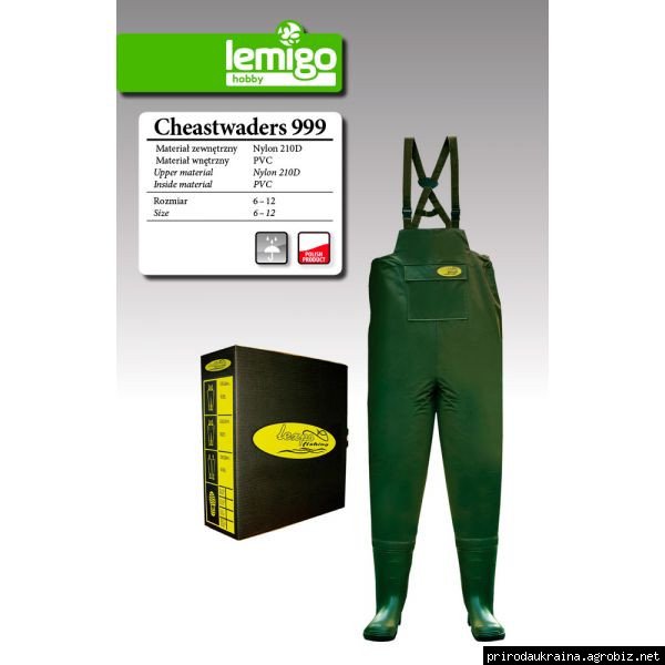 Вейдерсы Lemigo - это комфорт , водонепроницаемость, хорошая вентиляция, небольшой вес. Верхняя часть вейдерсов Lemigo сделана из водонепроницаемого нейлона (210D) прорезиненого внутри, удобный при ходьбе.Сапог произведен из высокоачественной твердой резины, оснащены антискользящими подошвами.