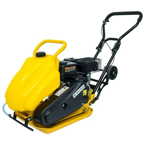 Складана ручка і вузол для підйому у вигляді рами над двигуном дає змогу без проблем транспортувати пристрій навіть у легковому автомобілі. Також для зручності транспортування ця вібраційна плита обладнана транспортувальними колесами. У комплект входить свічковий ключ.