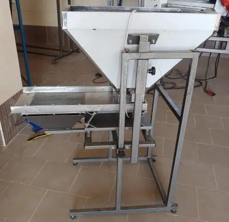 Подача продукту здійснюється за допомогою лінійної вібрації. Можливий варіант виготовлення лотка зі знімним решетом для відсіювання дрібної фракції.