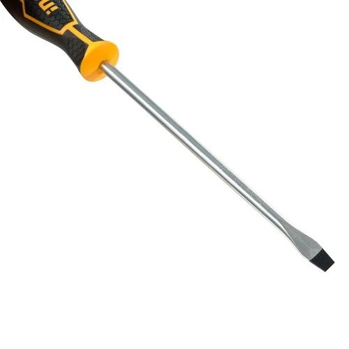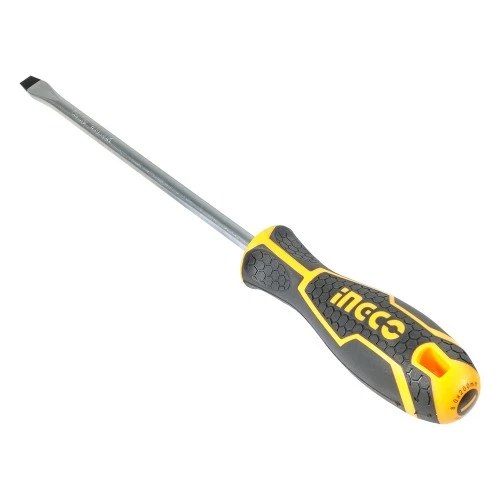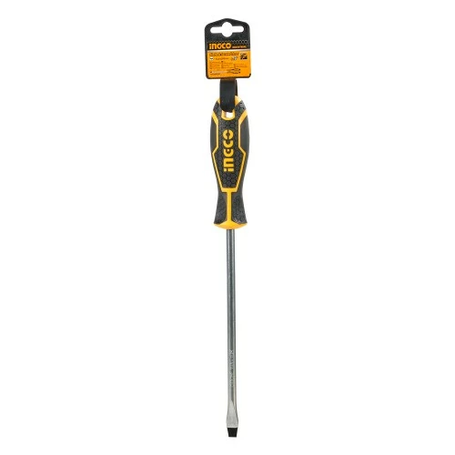 Викрутка плоска 8х200 мм INGCO INDUSTRIAL з прямим шліцом застосовується для різних робіт з кріпленням. Хвостовик циліндричної форми, виконаний з високоякісної хромованадієвої сталі.