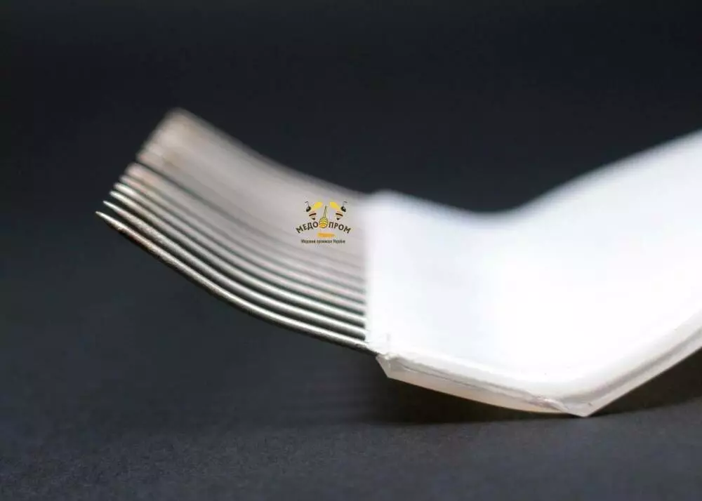 Увеличенная длина в 250 мм делает этот инструмент особенно удобным для обработки больших рамок и позволяет сэкономить время при распечатке больших объёмов сот. Эргономичная ручка вилки способствует надёжному и комфортному захвату, снижая усталость рук при длительной работе.
