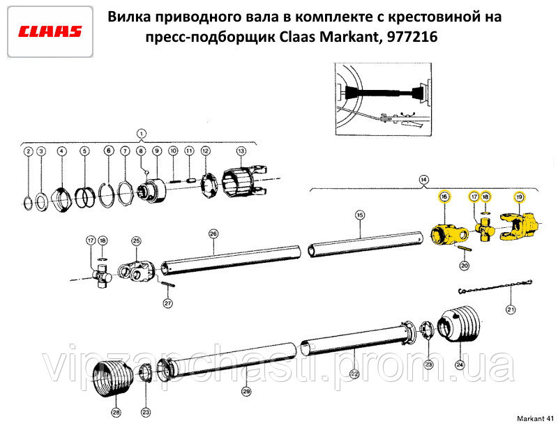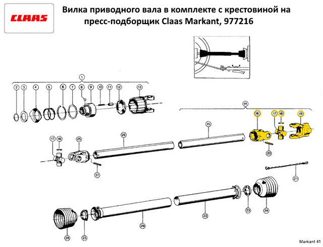 Вилка приводного вала в комплекте с крестовиной на пресс-подборщик Claas Markant, 977216