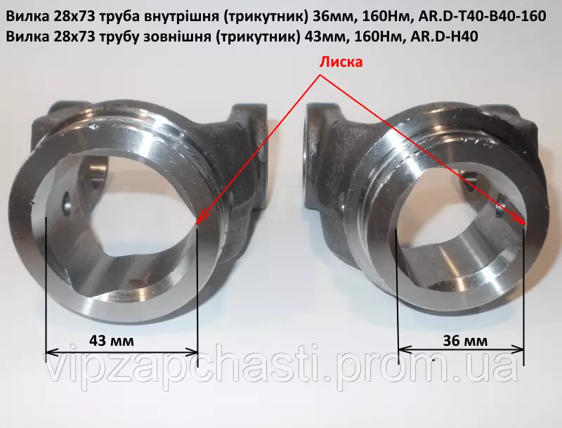 Вилка внутреннюю трубу (трехугольник) 36мм крестовина 28х73
